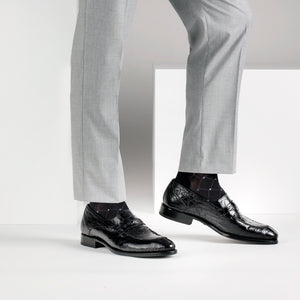 Mens Mezlan Bixby Caiman Crocodile Penny Loafer Dress Shoe in Black