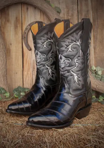 Vendor:alligatorwarehouseLos Altos Boots - Mens Dress Cowboy Boot - Low Priced Black Eel Skin R-Toe Western Boots- in Black