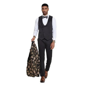 2024 Black & Pink Shiny Floral Mens 3pc Suit by Tazzio
