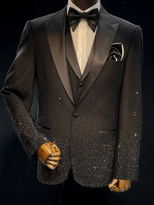 Slim fit 3 Piece Black Tuxedo is designed for modern elegance with a touch of glamour.