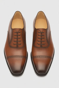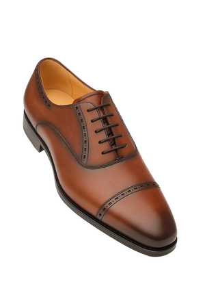 With its rich cognac finish and impeccable construction, the Amaro Cap Toe Oxford is a versatile and essential addition to any gentleman’s dress wardrobe.