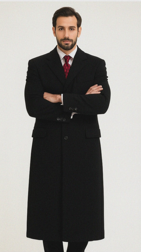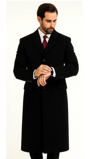 Black Cashmere Chesterfield Overcoat – 1920s Full Length Topcoat