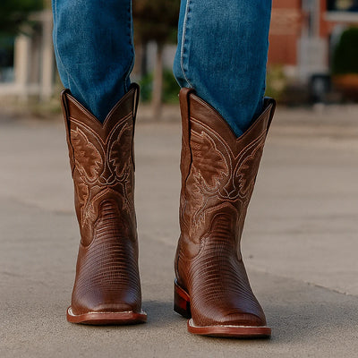 These Men’s Armadillo (Teju Lizard) Leather Western Boots are a true expression of luxury, tradition, and expert craftsmanship. Handcrafted by master artisans in León, Guanajuato, Mexico, these boots are made from certified, premium-grade genuine Teju lizard leather, prized for its natural texture and durability. Designed with a wide square-toe ranch-style last, they provide both comfort and bold Western character. The 1.5-inch heel offers balanced height and stability, while the leather vaqueta outsole ensures long-lasting wear and flexibility. Featuring an EE width, these boots are ideal for men who need extra room without compromising style. Every detail reflects precision, heritage, and quality, making these boots a standout choice for those who appreciate authentic Western footwear with refined elegance.