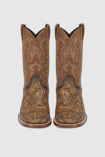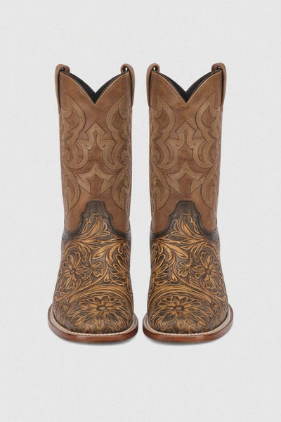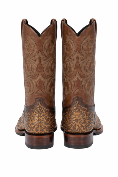 Botas de Cuero Cincelada Horma Rodeo Cuadrada