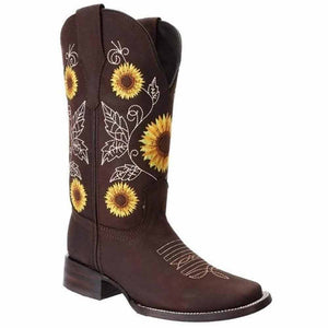 Botas de Cuero Horma Rodeo para Mujer Color Chocolate con Girasoles JB-1505CHO