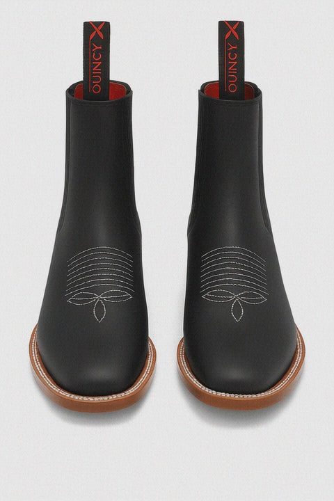 Botines Charros Quincy con Punta Cuadrada Color Negro