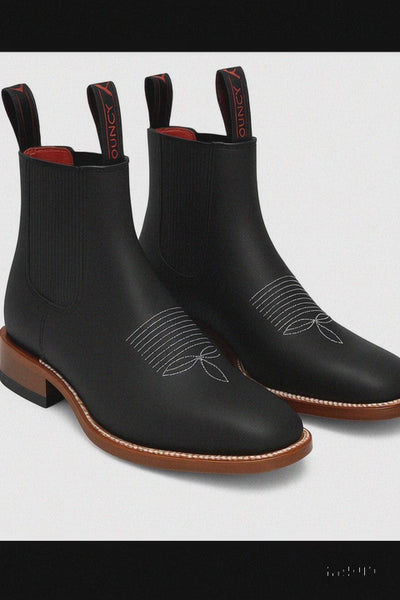 Eleva tu estilo con la elegancia tradicional y la calidad inigualable de los Botines Charros Quincy, diseñados para quienes buscan comodidad, presencia y auténtica esencia mexicana. Fabricados en piel genuina de acabado suave y resistente, estos botines destacan por su diseño clásico con punta cuadrada y finas costuras decorativas bordadas en el empeine, que realzan su carácter artesanal.