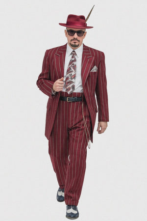 Step back into the roaring 1920s and 1930s with this bold Burgundy Pinstripe Zoot Suit – the ultimate gangster-inspired outfit that brings vintage style back to life. Perfect for themed parties, stage performances, prom nights, or anyone who wants to make a sharp fashion statement.