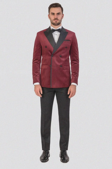 Burgundy Velvet Double Breasted Tuxedo Jacket – Wedding & Prom