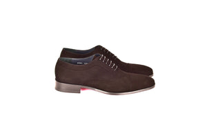 Elevate your style with our C0001107-6694 Cap Toe Lace Up shoe in sleek black Suede. The sophisticated cap toe design and 6-eyelet lace up elevate any outfit, while providing a secure and comfortable fit. Made with premium materials for a touch of luxury.