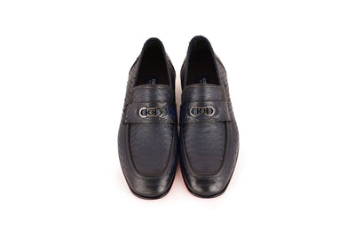 Elevate your style with our C0001114-7652 Python Loafers in Navy. Made with luxurious python leather and adorned with a small ornament, these loafers add a touch of sophistication to any outfit. Complete with a striking red leather sole, these shoes are the epitome of elegance and exclusivity.