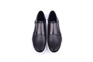 Elevate your style with our C213-4302 Hightop Casual in Grey. This luxurious shoe features a double buckle and convenient side zipper, adding a touch of sophistication to your casual look. Step up your fashion game with these exclusive high tops.