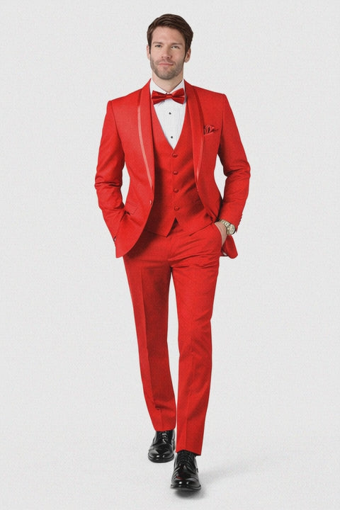 Classic Red Shawl Lapel Tuxedo for Men | 1-Button 4-Piece Suit