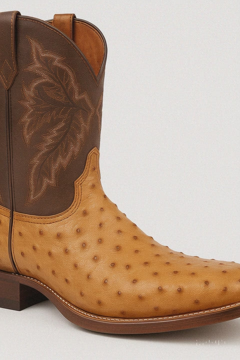 Crafted using genuine ostrich full quill, the boot’s texture offers a rich, sophisticated look paired with a soft, flexible feel that molds comfortably to your foot over time. The sand color enhances the natural beauty of the ostrich quills, making these boots a versatile match for denim, dress pants, or Western suits.