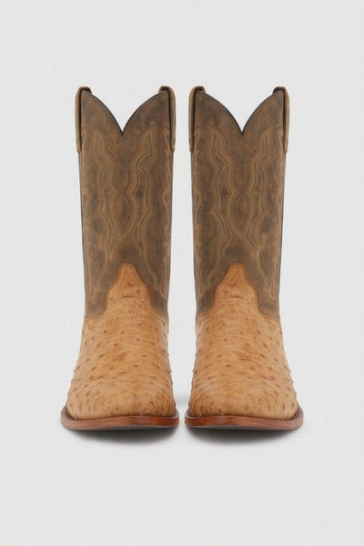 Dan Post Men's Gehrig Full Quill Ostrich Round Toe Boots - Saddle