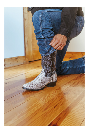 Crafted to perfection, the Manning is made with a genuine python skin foot and leather shaft. The white classic stitching adds a great look to this exotic boot. Comes with a Soft Strike Removable Orthotic.