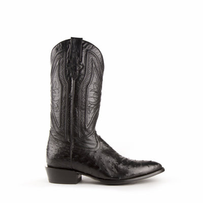Ferrini Colt Ostrich Quill Medium Round Toe Cowboy Boot in Black
