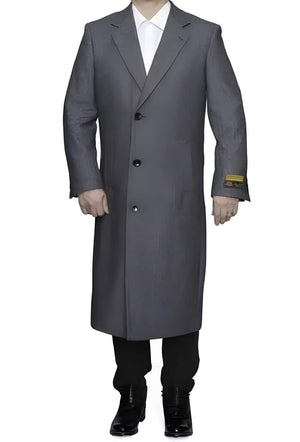 Full Length men's Ankle length Top Coat / Overcoat In Grey Herringbone - Mens Overcoat