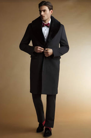 Fur Collars men's Overcoat - Wool Black Peacoat