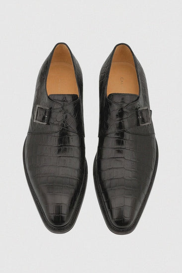 Gigolo Black Crocodile Single Monk-Strap Loafers By Mezlan Made In Spain Brand