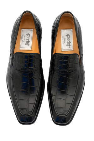 The Ferrini Black Crocodile Skin Loafers are the perfect marriage of Italian craftsmanship and exotic luxury. Handcrafted from genuine crocodile skin, these loafers showcase a unique pattern on every pair, making each shoe one-of-a-kind. The sleek black finish enhances their elegance, while the loafer design adds both comfort and versatility.