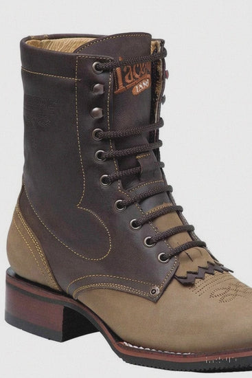 With a classic look. Featuring a square toe, lace-up design, and sturdy construction, these mens cowboy boots are ideal for work or casual wear.