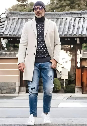 Add a touch of refined elegance to your wardrobe with this Light Tan Overcoat in a beige sand color, designed for the modern gentleman. Featuring a single-breasted 3-button closure and a classic notch lapel, it offers a timeless, versatile look suitable for any occasion. The lightweight carcoat design makes it perfect for layering over suits or casual outfits during cooler seasons. Thoughtfully detailed with one chest pocket and two flap front pockets, it blends practicality with style. The neutral tan shade complements a wide range of colors, enhancing your overall ensemble effortlessly. Crafted for comfort and sophistication, it’s ideal for weddings, business events, and formal gatherings.