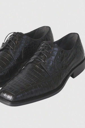 The Los Altos Black Crocodile Bike Toe Shoes are a refined blend of traditional craftsmanship and exotic luxury. Handcrafted from genuine crocodile leather, they feature a sleek “bike toe” design — a subtle seam running up the vamp — which adds character without sacrificing elegance. The deep black tone and high-quality finish make these shoes a sophisticated, durable choice for men who want distinctive footwear that remains versatile.