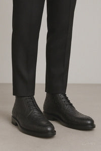 The smooth black finish enhances the natural quill pattern, while the ankle-length design ensures a tailored fit and contemporary appeal. Built with durability and comfort in mind, these boots feature a cushioned insole, leather lining, and a sturdy outsole — making them a lasting investment in both style and function.