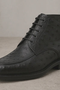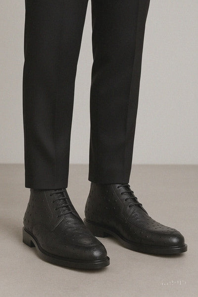 Step into refined luxury with the Los Altos Black Ostrich Quill Dress Ankle Boots, a bold expression of craftsmanship and sophistication. Expertly handcrafted from genuine ostrich quill leather, these boots showcase a distinctive texture that exudes elegance and exclusivity. Designed for the modern gentleman, they combine traditional western artistry with a sleek dress-boot silhouette, perfect for both formal and upscale casual occasions.