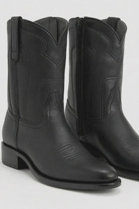 Los Altos Men's Belmont Finish Black Leather Zipper Roper Heel Toe Boot – Genuine Leather Craftsmanship