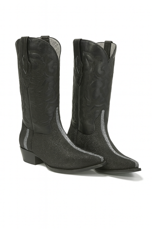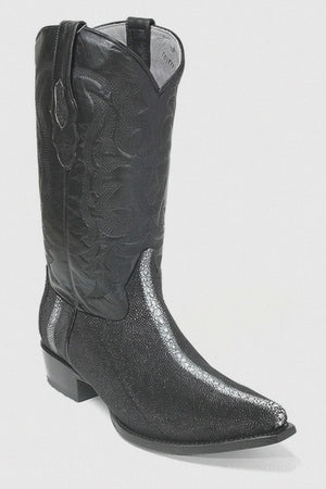 Los Altos Men's Black Stingray with Full Rowstone Finish Snip Toe Boots