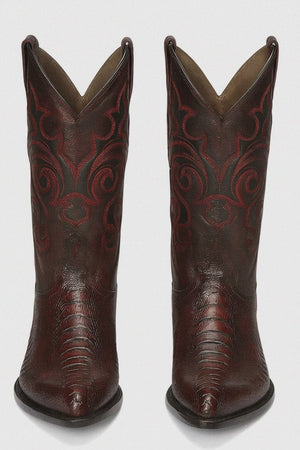 What truly elevates this design is the Black Cherry finish—a deep, luxurious tone that shifts subtly between burgundy, maroon, and dark wine hues depending on the light. This rich color adds character and versatility, making the boots equally suited for upscale evenings, formal Western wear, or refined everyday looks. Pair them effortlessly with dark denim, tailored trousers, or a classic cowboy ensemble for a commanding, sophisticated presence.