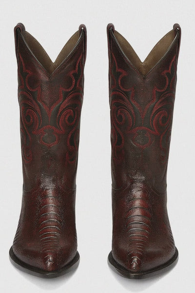The ostrich leg texture is stunning, and the Black Cherry color is even better in person. These boots feel truly premium. – Miguel R.