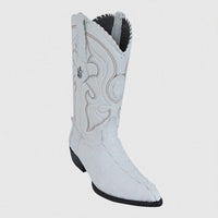 The vamp is constructed from authentic caiman tail leather, offering a one-of-a-kind texture and striking scale patterns that make each pair completely unique. Finished in a clean, vibrant white, these boots exude confidence and refinement, making them the ideal footwear for weddings, celebrations, performances, or upscale outings.