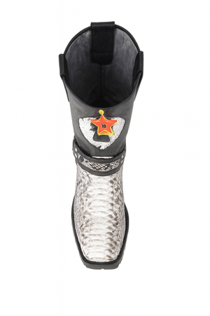 Step into bold, untamed style with the Los Altos Natural Black Python Biker Boots – a statement piece crafted for men who embrace power, luxury, and individuality. Made from genuine natural python skin, these boots showcase unique scale patterns that ensure no two pairs are alike. The black finish adds versatility, while the rugged biker boot silhouette blends raw edge with refined craftsmanship. Built with Goodyear welt construction, cushioned insoles, and durable leather soles, these boots deliver both comfort and lasting quality.