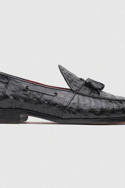 Marco Di Milano Bianchi Black Caiman Crocodile Tassel Loafers