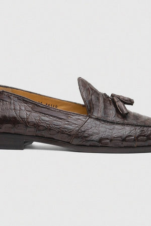 Marco Di Milano Bianchi Brown Caiman Crocodile Tassel Loafers