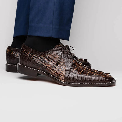 Marco Di Milano Caribe Men's Shoes Orix & Brown Exotic Hornback Crocodile Skin Derby Oxfords