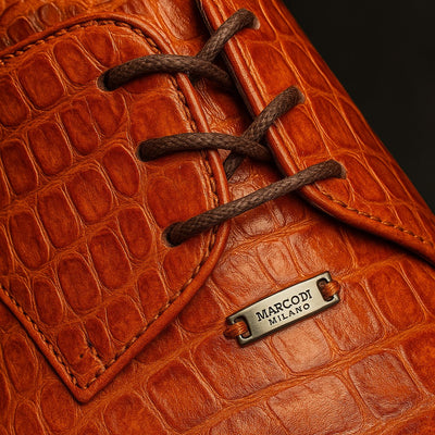 Elevate your formal wardrobe with the Marco Di Milano Lacio Brandy Caiman Crocodile Derby, a masterpiece of elegance, craftsmanship, and prestige. Designed for the modern gentleman with a taste for bold sophistication, this luxury dress shoe blends old-world artisan techniques with contemporary Italian-inspired style. Crafted from genuine Caiman crocodile leather and hand-finished in a rich brandy hue, this derby is a testament to exotic luxury and sartorial excellence.