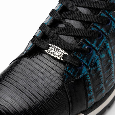 Marco Di Milano Portici Men's Shoes Blue & Black Exotic Lizard / Crocodile Casual Sneakers