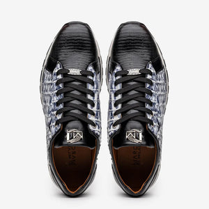 Marco Di Milano Portici Men's Shoes Newspaper & Black Exotic Lizard / Crocodile Casual Sneakers