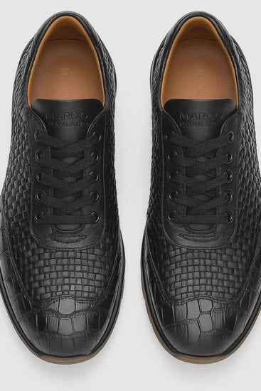 Marco Di Milano Roma Men Shoe Black Genuine Caiman Crocodile / Woven Leather Fashion Sneakers