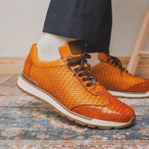 Marco Di Milano Roma Men's Shoes Brandy Exotic Crocodile / Woven Leather Casual Sneakers