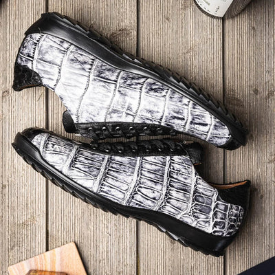 Marco Di Milano Saulo Men's Shoes Black & Newspaper Exotic Ostich / Alligator Casual Sneakers