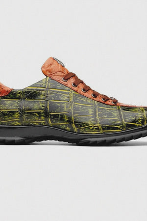 Marco Di Milano Saulo Men's Shoes Green & Cognac Exotic Ostich / Alligator Casual Sneakers