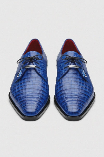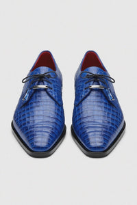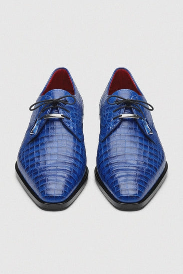 Ideal for special occasions, upscale events, business wear, or collectors of exotic leather shoes, the Electric Blue Caiman Derby delivers bold color, premium materials, and timeless design in one exceptional piece.