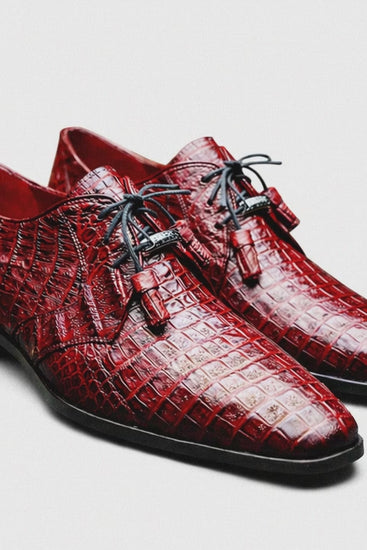 Step into prestige with the Marco Milano Wine Burgundy Caiman Shoes – Lacio Derby Edition, where luxury meets legacy. From boardrooms to black-tie events, these handcrafted masterpieces deliver the ultimate expression of power, class, and individuality.