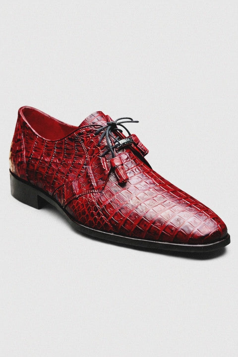 Marco Milano Exotic Caiman Shoes Wine Burgundy Gator Derby Lacio