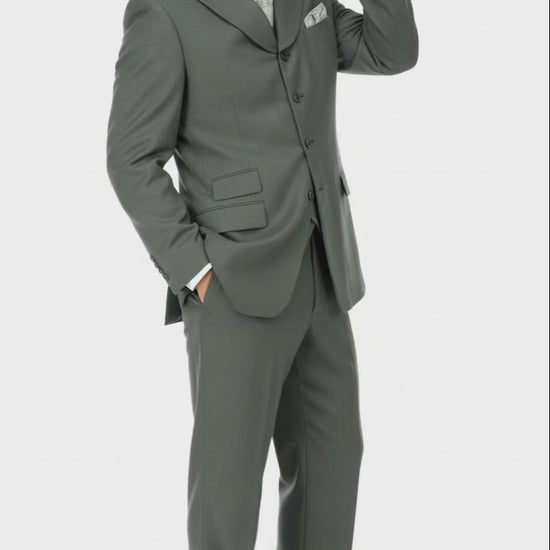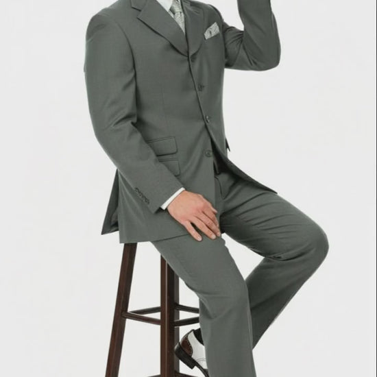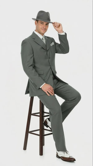 Men’s 1920s Gray Zoot Suit – 4 Buttons Gangster Wide Lapel Long Jacket 3-Piece Suit in Grey Color Classic Fit Pleated Pants